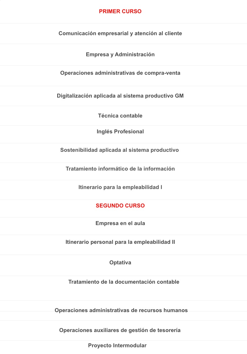 Descubre las materias que estudiarás en este Grado Superior de la familia de administración.