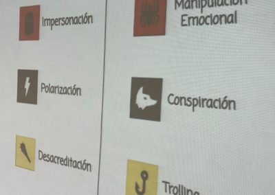 La metodología del taller ha combinado la explicación teórica con actividades prácticas diseñadas para favorecer la participación activa del alumnado. Uno de los momentos más destacados ha sido la actividad creativa realizada por parejas, en la que los estudiantes han simulado conversaciones dentro de una plataforma didáctica que recrea el funcionamiento de una cuenta de Twitter. A través de esta dinámica, han experimentado cómo se generan, amplifican y difunden los bulos, comprendiendo de primera mano los mecanismos que favorecen su viralización y el impacto que pueden tener en la opinión pública. 🔍💬