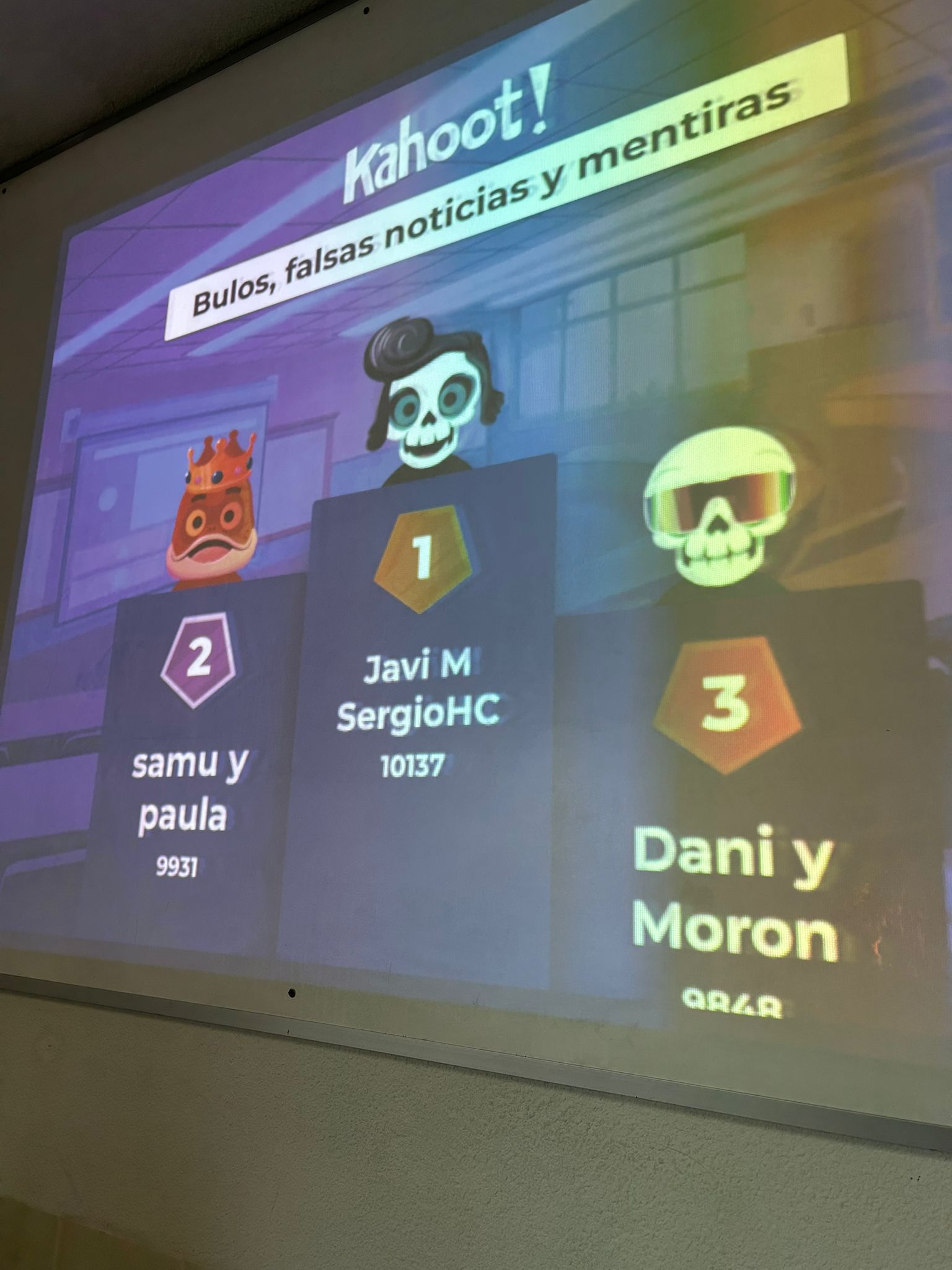 El alumnado de 4º de Educación Secundaria Obligatoria, perteneciente a los grupos A y B, ha participado hoy en un taller formativo centrado en la detección de bulos y noticias falsas en internet, una problemática de creciente relevancia en la sociedad digital actual. La actividad, organizada por el Ayuntamiento de Granada, se ha desarrollado en el marco de la asignatura de Lengua Castellana y Literatura y ha contado también con la implicación del alumnado del Ámbito Sociolingüístico, reforzando así un enfoque transversal y competencial del aprendizaje.
