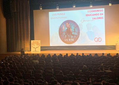 Luis Muñoz es un artista que combina música con mensajes positivos. Su intervención giró en torno a cómo la música puede ser vehículo de valores, de auto-superación y de encuentro entre jóvenes.