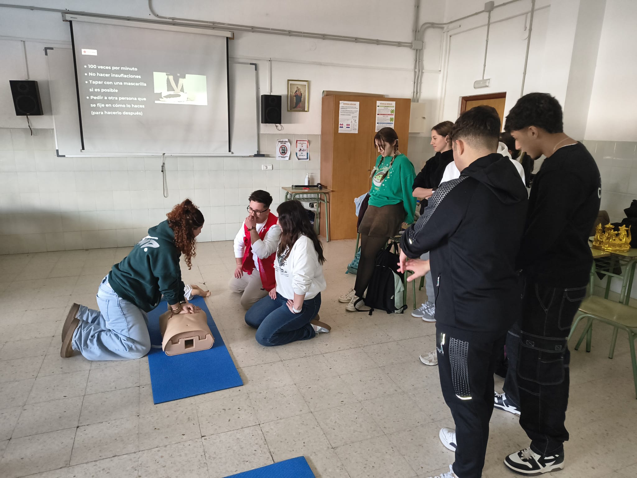 El enfoque participativo de la actividad favoreció un ambiente dinámico en el que el alumnado no solo adquirió conocimientos, sino que también pudo resolver dudas específicas relacionadas con distintos escenarios de emergencia: desde desmayos y atragantamientos hasta hemorragias o traumatismos. La interacción constante contribuyó a que la sesión se desarrollara de forma cercana y enriquecedora, permitiendo que los jóvenes comprendieran la importancia de saber actuar con rapidez y criterio.