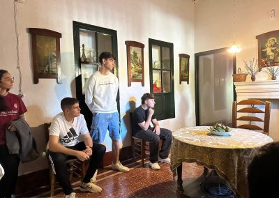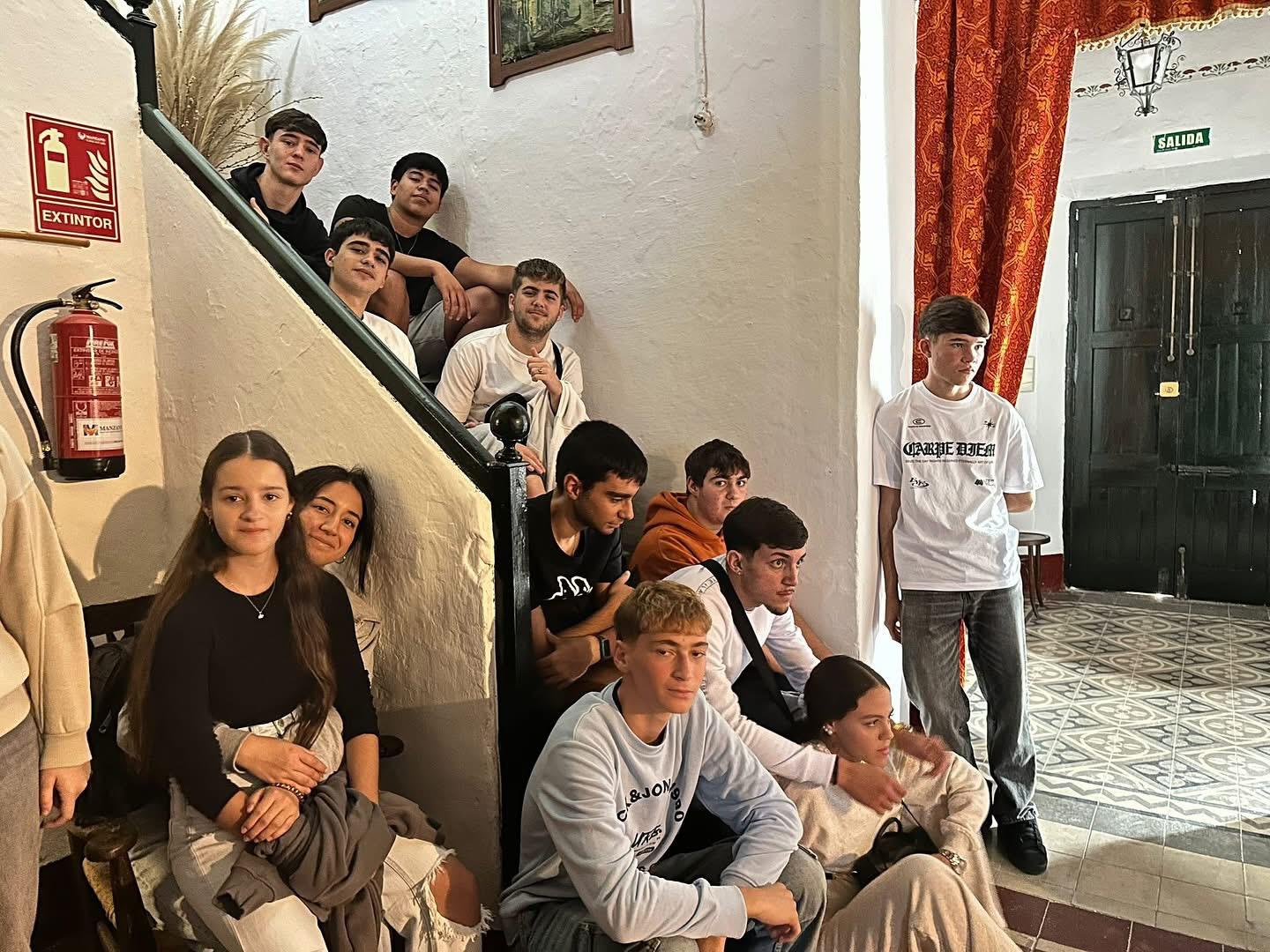 Durante la visita, los estudiantes recorrieron la casa original que sirvió de inspiración a Lorca para ambientar la obra, un espacio cargado de simbolismo y memoria histórica. A lo largo del itinerario, una cuidada representación teatral permitió al grupo adentrarse en el universo lorquiano gracias a la interpretación de personajes fundamentales como Bernarda, Adela, Martirio o La Poncia. Los actores recrearon escenas y diálogos esenciales, transmitiendo al público la tensión dramática, el peso de las normas sociales y el conflicto entre autoridad y libertad que vertebran la obra.