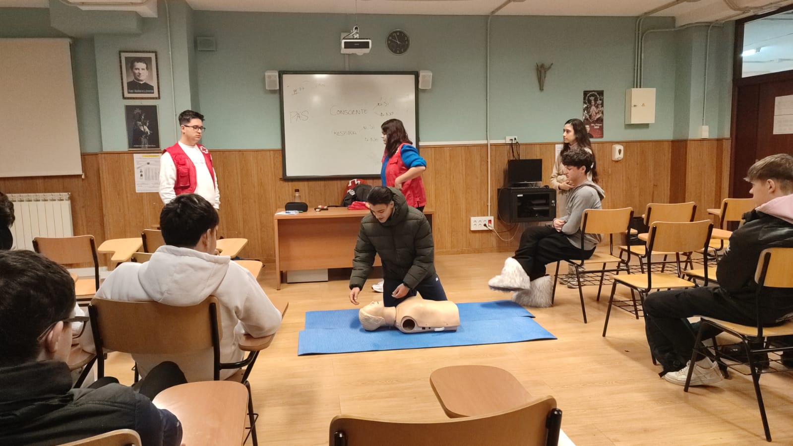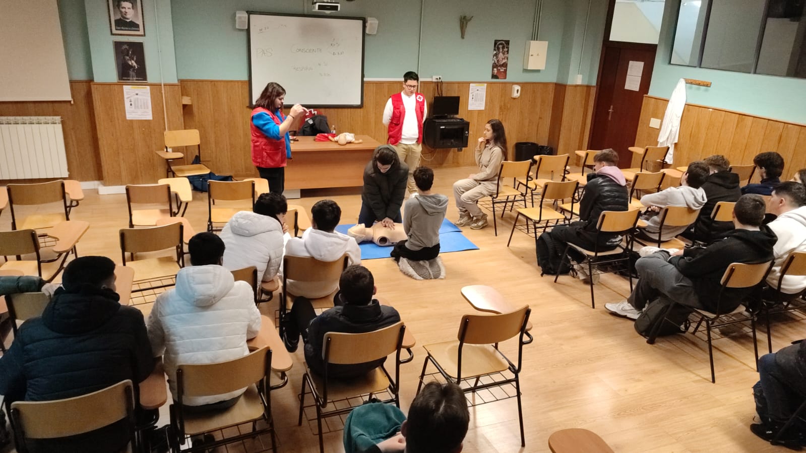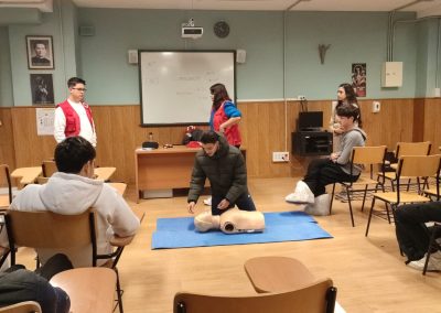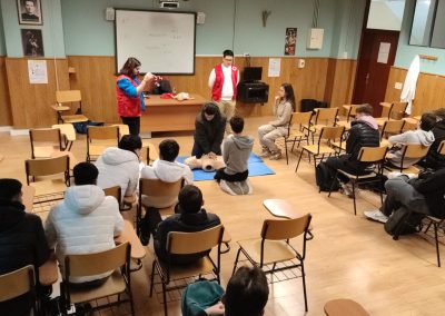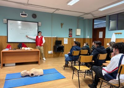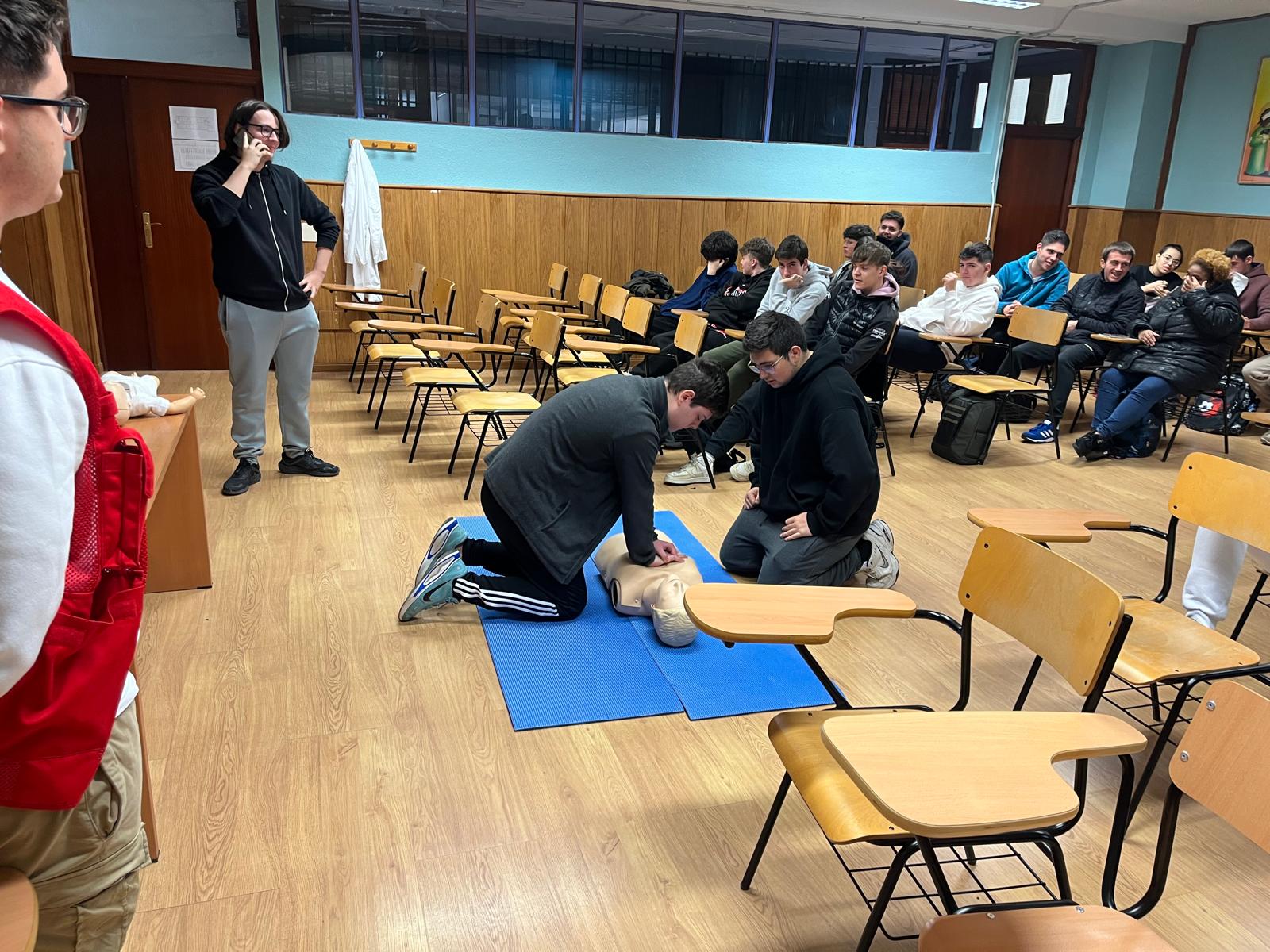 La actividad incluyó, además, un bloque práctico en el que los estudiantes realizaron maniobras de reanimación cardiopulmonar (RCP) utilizando un maniquà de entrenamiento. Esta experiencia despertó un notable interés entre los participantes, que aprovecharon la ocasión para plantear numerosas preguntas y resolver dudas relacionadas con la correcta actuación ante emergencias.