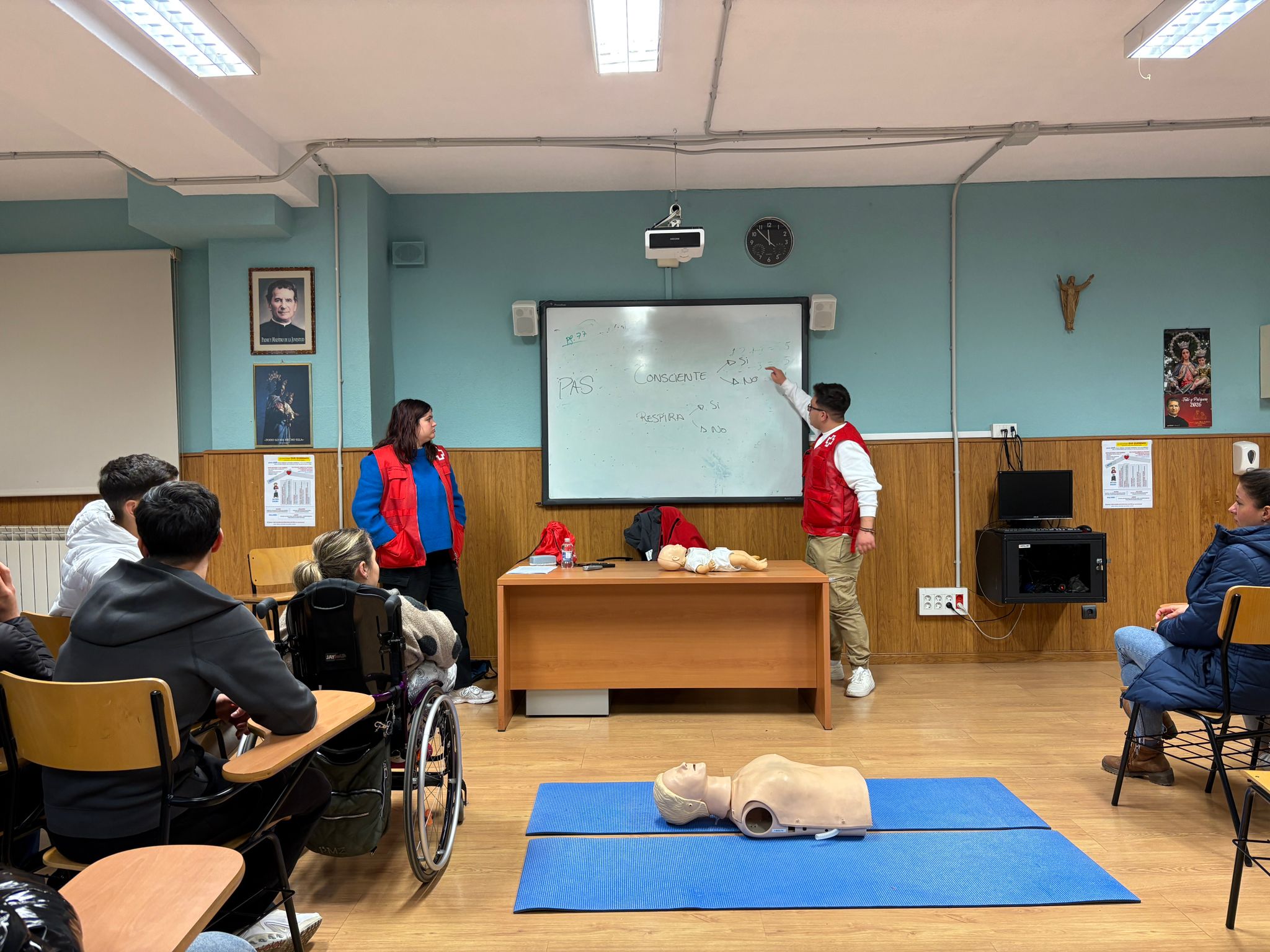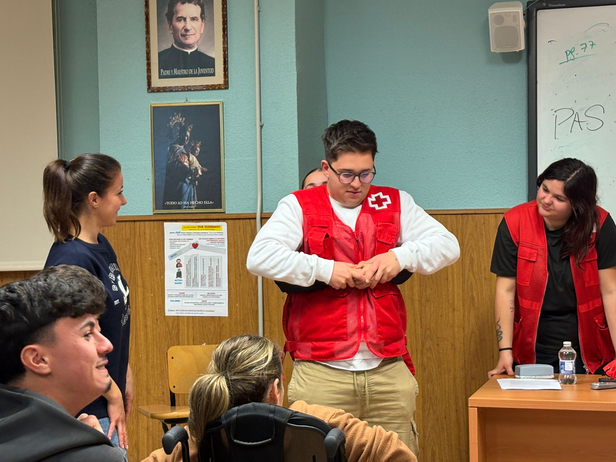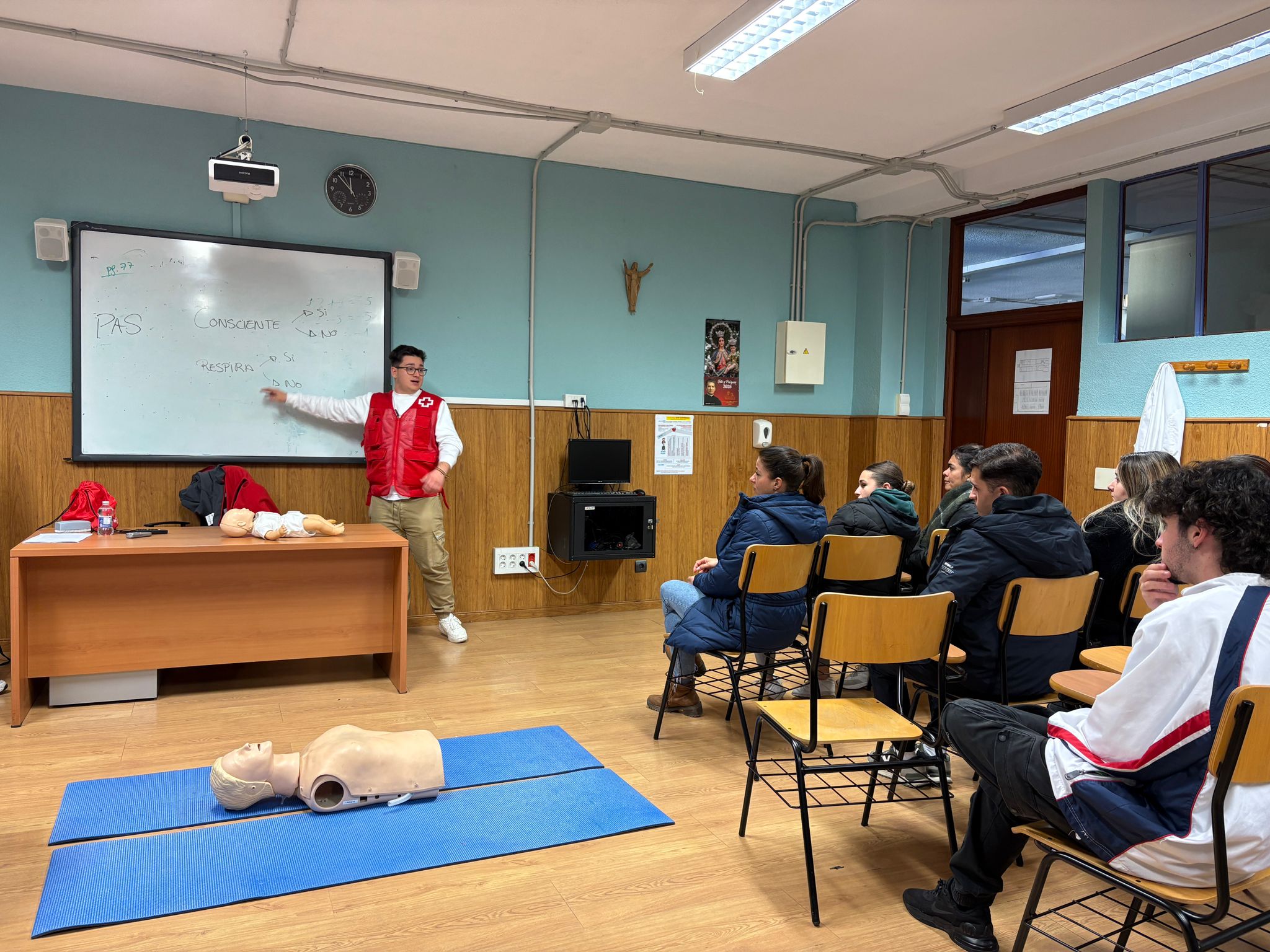 Durante la sesión, los voluntarios de Cruz Roja centraron la formación en el método PAS (Proteger, Avisar y Socorrer), considerado el pilar fundamental de cualquier intervención en primeros auxilios. A través de explicaciones claras y ejemplos prácticos, el alumnado pudo analizar cada una de las fases del protocolo, comprender su finalidad y reconocer la importancia de mantener la calma ante situaciones crÃticas.