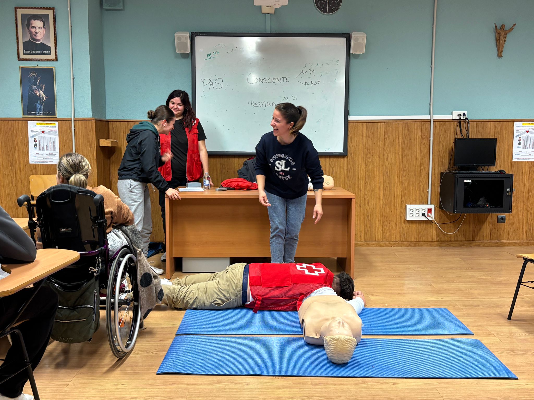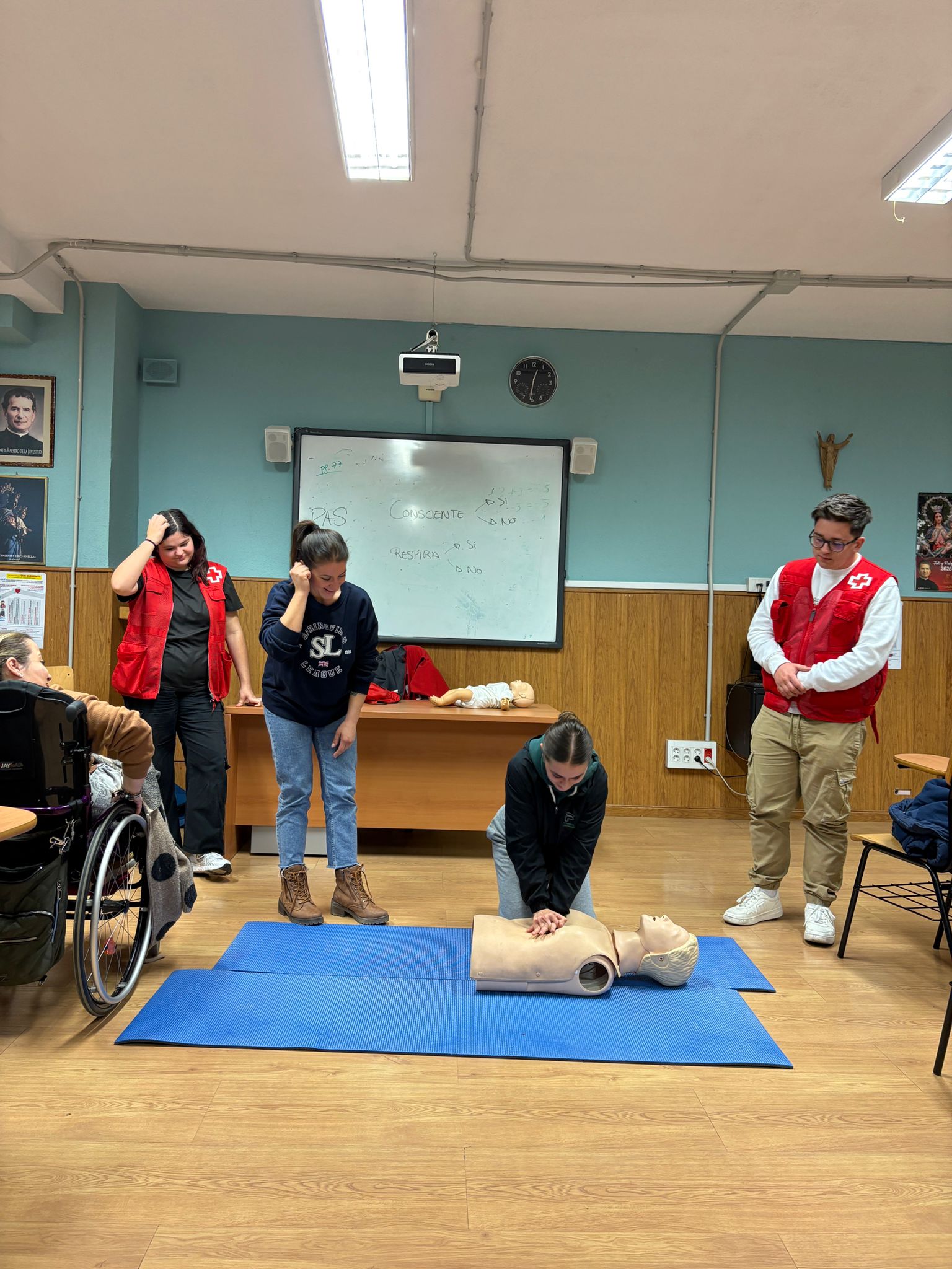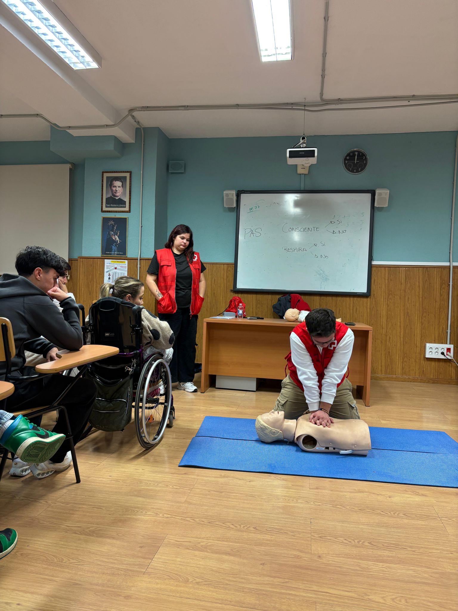 Durante la sesión, los voluntarios de Cruz Roja centraron la formación en el método PAS (Proteger, Avisar y Socorrer), considerado el pilar fundamental de cualquier intervención en primeros auxilios. A través de explicaciones claras y ejemplos prácticos, el alumnado pudo analizar cada una de las fases del protocolo, comprender su finalidad y reconocer la importancia de mantener la calma ante situaciones crÃticas.