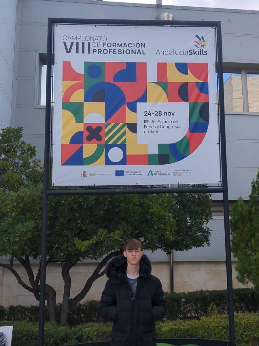 Durante esta semana, el estudiante José Ramón Rodríguez, del ciclo de Instalaciones Eléctricas y Automáticas, ha participado en la octava edición del campeonato de Formación Profesional Andalucía Skills, una cita que reúne a los mejores alumnos y alumnas de FP de toda la comunidad autónoma. El certamen, organizado por la Junta de Andalucía, constituye uno de los escenarios más destacados para visibilizar el talento emergente y el alto nivel técnico que se desarrolla en los centros educativos andaluces.